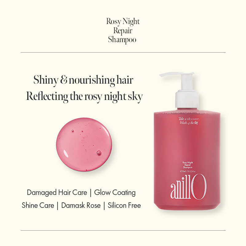 [ANILLO] SET of Rosy Night Repair Hair Shampoo450ml + Ampoule Treatment200ml + Hair mist100ml + Hair Essence50ml_damaged Hair Repair