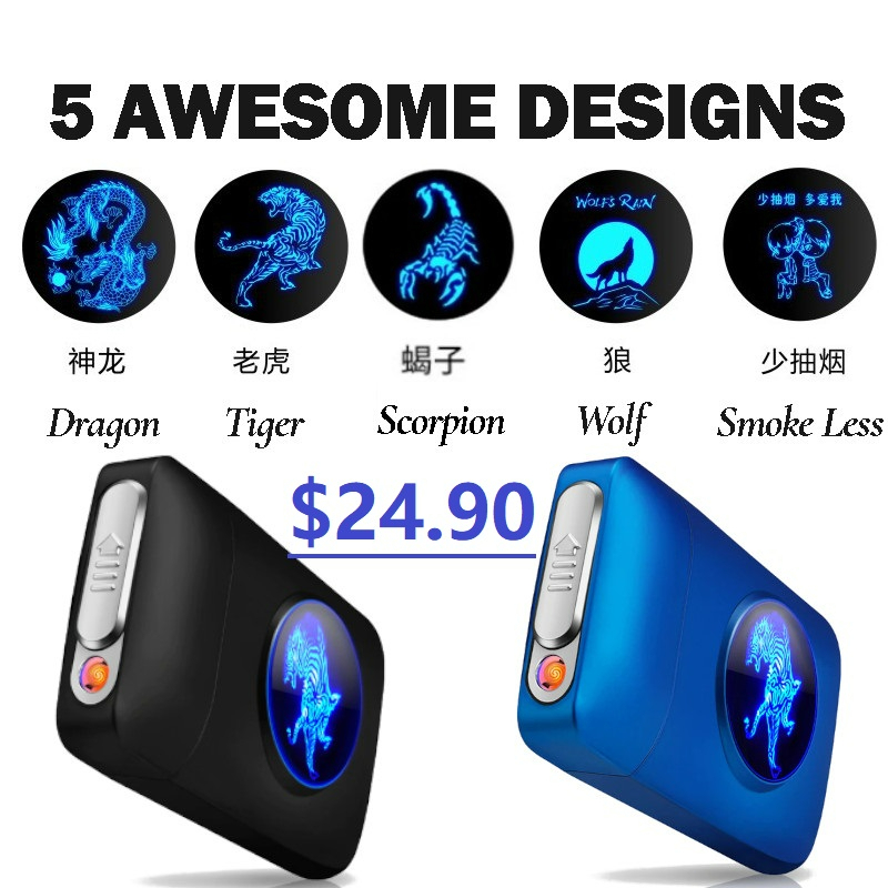 [Can Customize] USB Rechargeable Electric Lighter. Fancy LED Display Best Birthday Gift. Hold 19 Standard Sticks