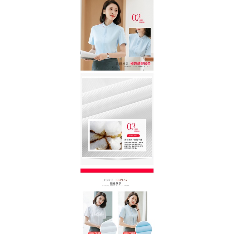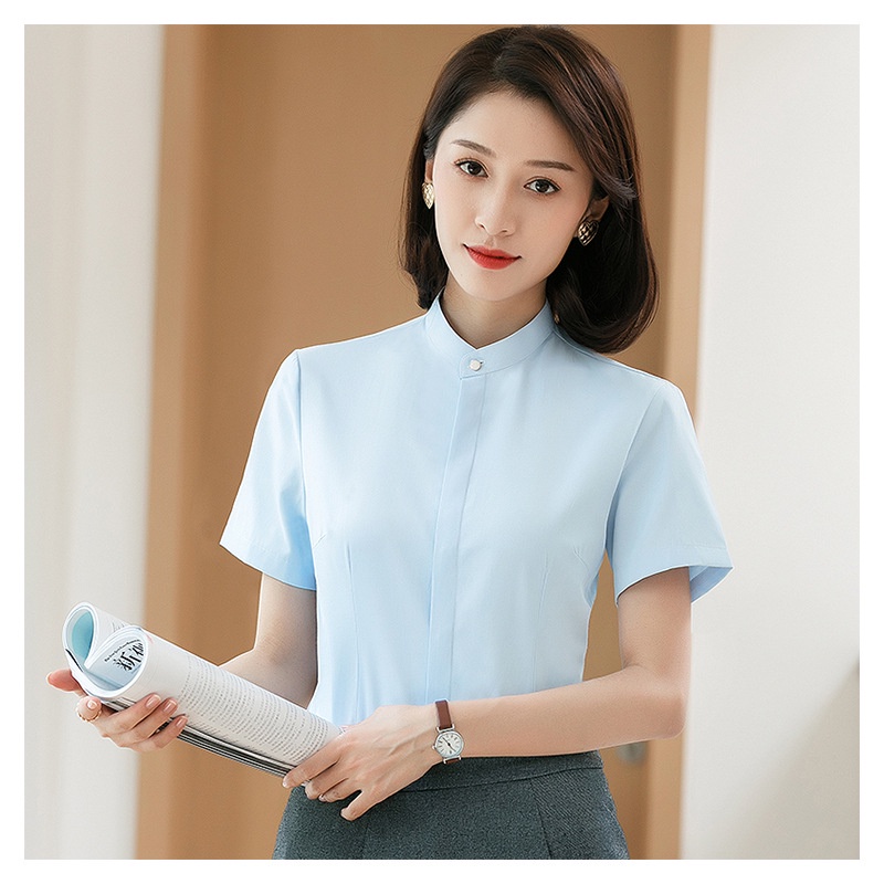 [Ready Stock Free Shipping] Summer Korean Version Solid Color Stand-Up Collar Cotton Temperament Commuter Short-Sleeved Single-Breas
