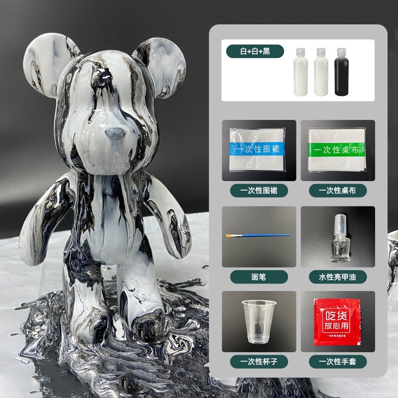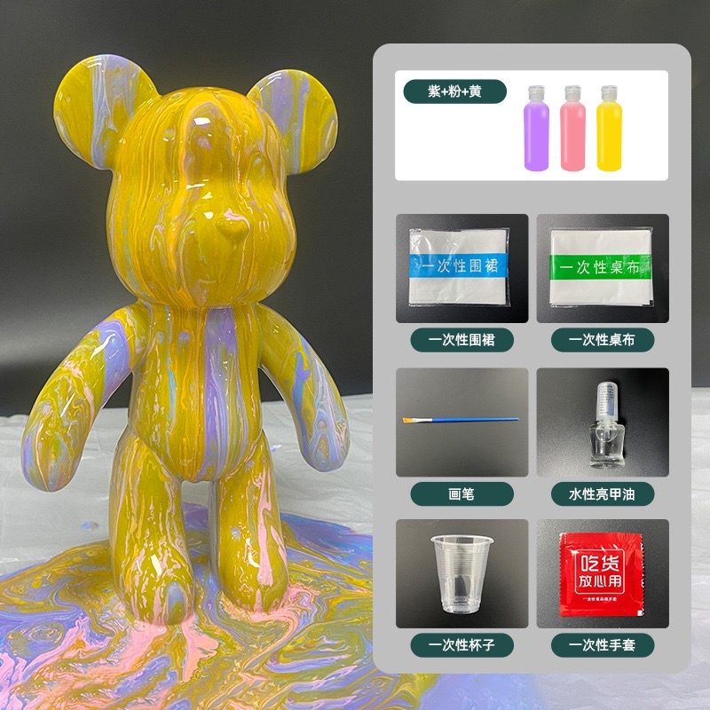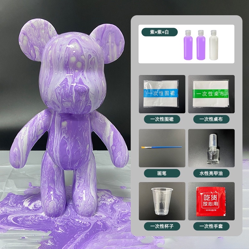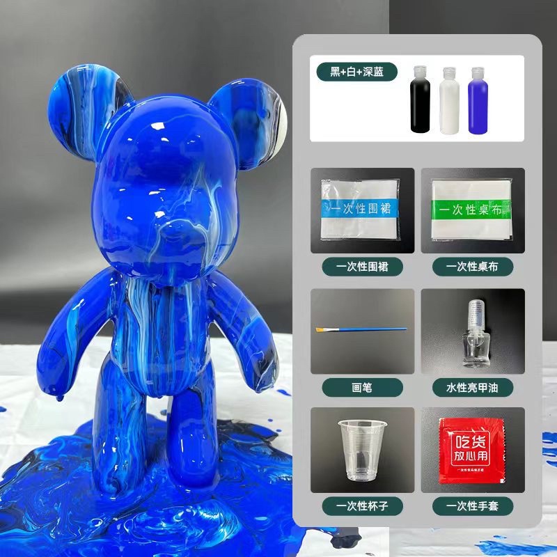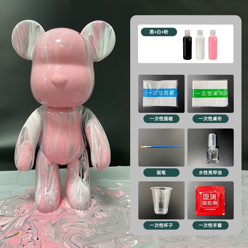 ? Local Seller ?Bearbrick DIY Fluid Painting 23cm Bear model + Material Pack + 60ml Pigment) Room decoration