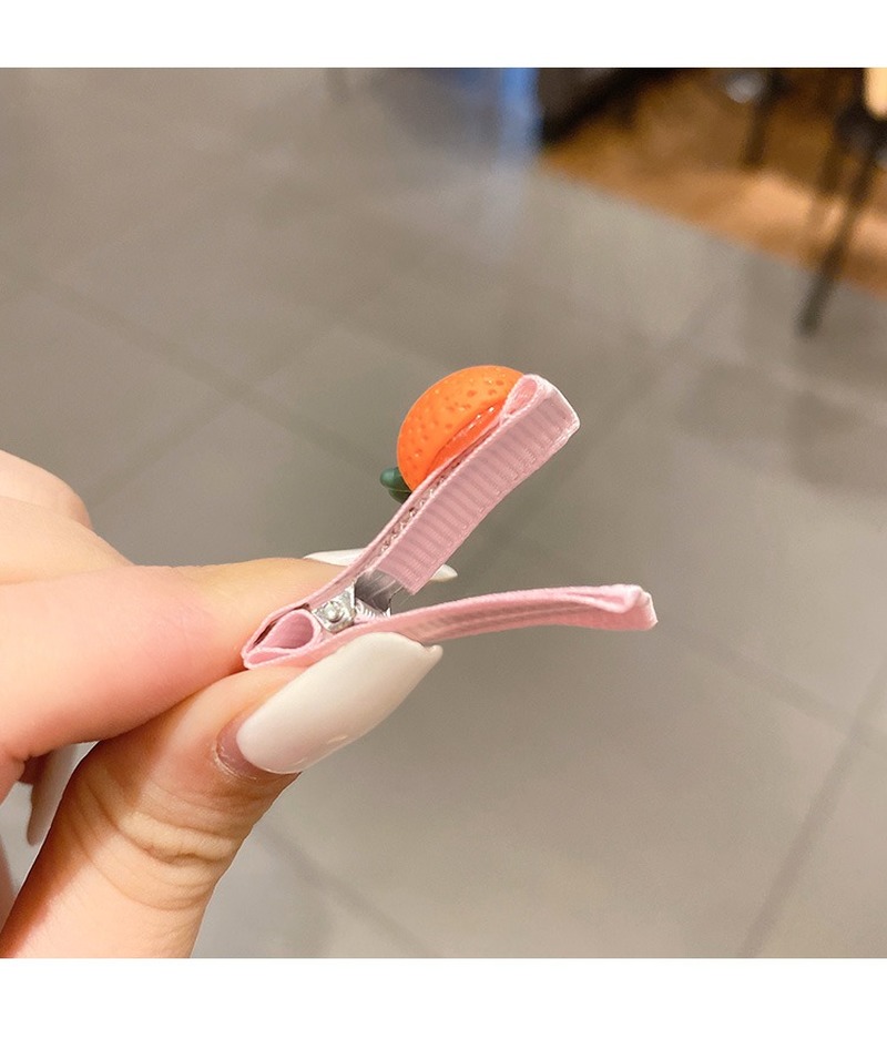 Material: Baby clips combined with many materials such as plastic, fabric, metal. True to description: true Color: Pink and fruit color and color The clip is small, cute, the fruit looks very cute inside.