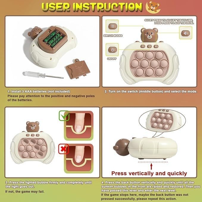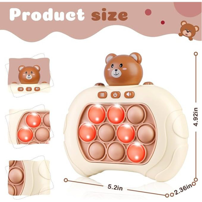Quality:Cute and lovely! Appearance:Greattttt Arrived fast in just 3 days thanks seller for super cute lovely pop it game! Requires 3x AAA ? batteries. Hope have promo again thanks seller love it!!!❤️❤️❤️???
