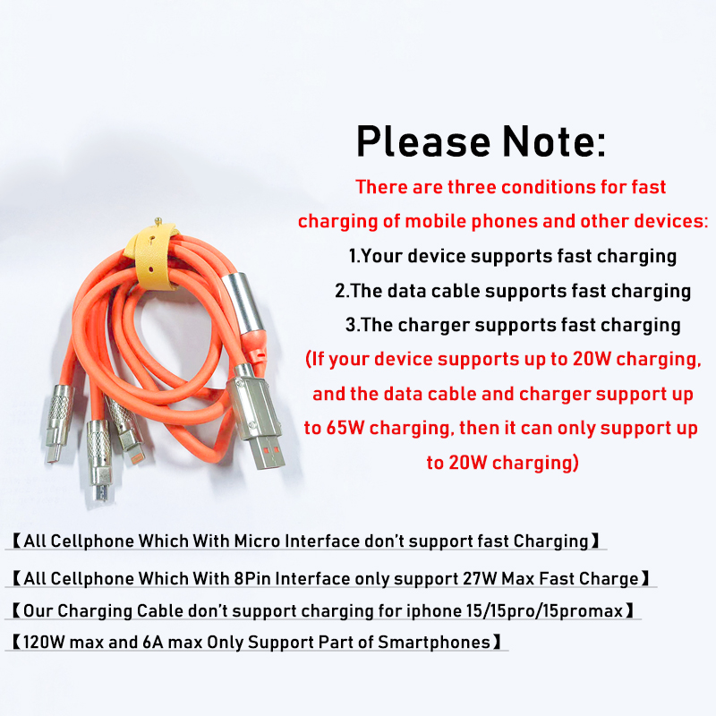 3 IN 1 Zinc Alloy Charging Cable 120W 6A Super Fast Charger