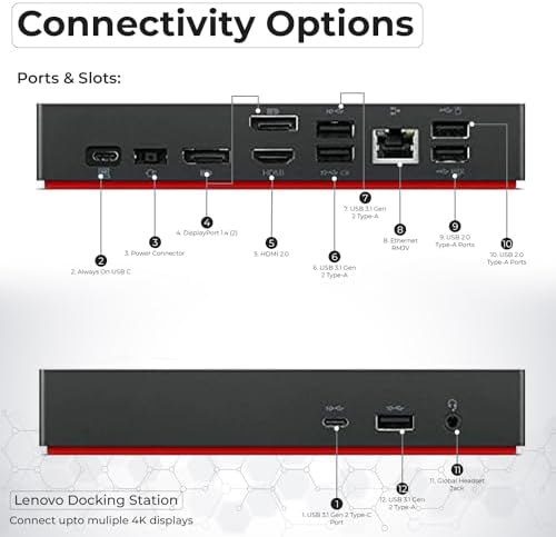 40AY0090US Lenovo Thinkpad Docking Station Dual Monitor Bundle - Supports 4K Display, Thinkpad Dock with AC Adapter + 4K HDMI Cable + 4K DisplayPort Cable + USB C Cable + Microfiber Cloth