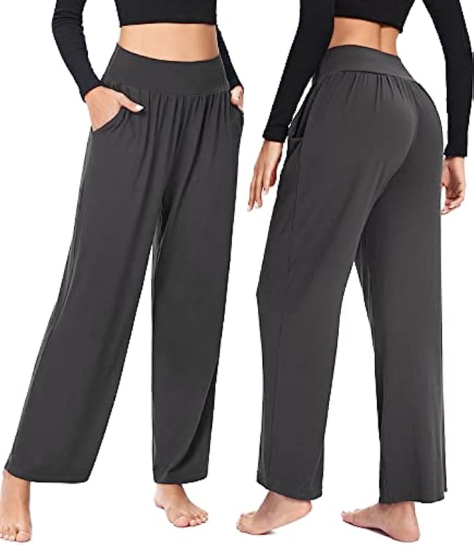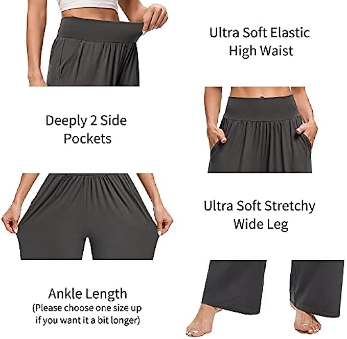 95%viscose,5%spandex Imported Elastic closure Machine Wash ✅ ULTRA SOFT & LIGHTWEIGHT MATERIAL - The ASIMOON wide leg sweatpants women was made from 95% Polyester & 5% Spandex.The material has the same high spandex content that other womens loose yoga pants did and it's the perfect weight to not be see through but still light and breathable. These woman's comfy pants are buttery soft and have great stretch and movement. The loose fitting makes them really comfortable for using as high waisted lounge pants. ✅ HIGH WAISTED SWEATPANTS FOR WOMEN WITH POCKETS - Loose yoga sweatpants for women,slenderize & smooth to flatter the figure & give you a sleek physique.Comfy lounge pants women with high waistband that delivers a moderate level of compression,which high enough to cover your stomach, they could also be your maternity sweatpants and it's easy to match ! ✅ SWEATPANTS WOMEN WITH FUNCTIONAL POCKETS - Four-way stretch material loose workout pants for women improves your range of motion while you are training , specially support all yoga postures,even when you dance.The 2 side pockets design for convenience which help you free your hands.