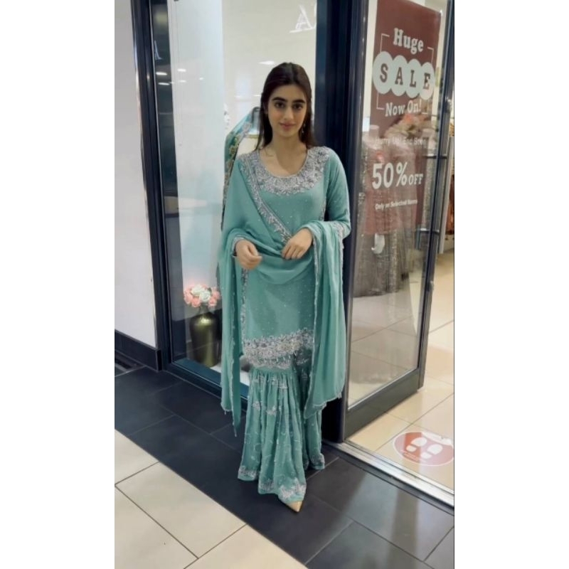 Added new colours *Ready to wear* -3 piece set (kurti+Plazzo+dupatta) designer sharara suit