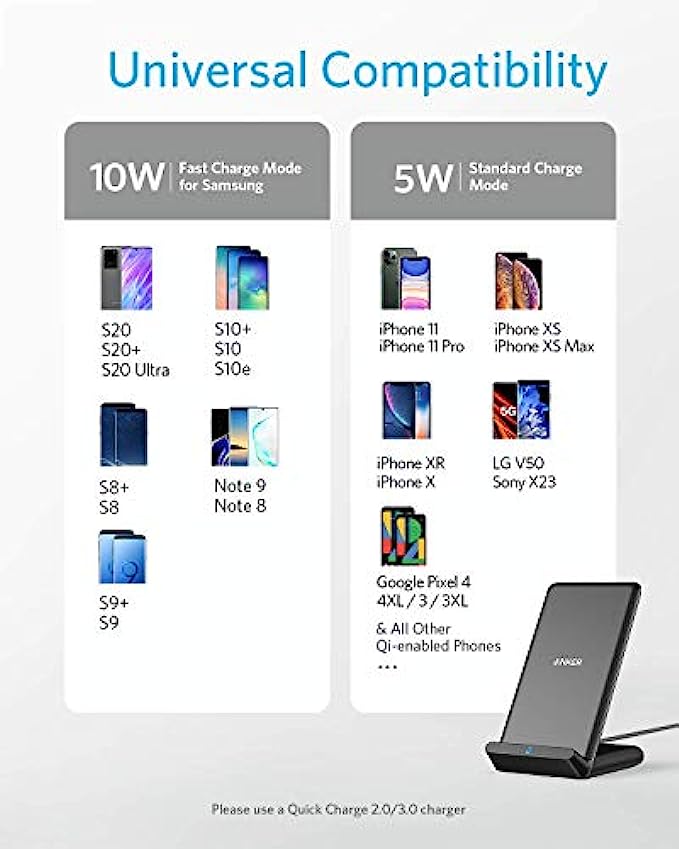 Anker Wireless Charger, 313 Wireless Charger (Stand), Qi-Certified for iPhone 12, 12 Pro Max, SE, 11, 11 Pro, 11 Pro Max, XR, XS Max, 10W Fast-Charging Galaxy S20, S10 (No AC Adapter)