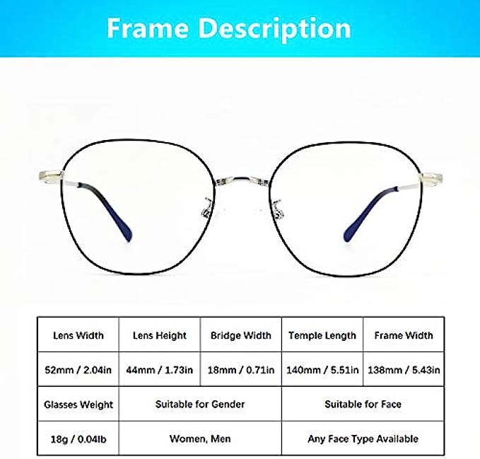 Anti Blue Light Glasses Women Men Computer Reading Metal Eyeglasses Frame