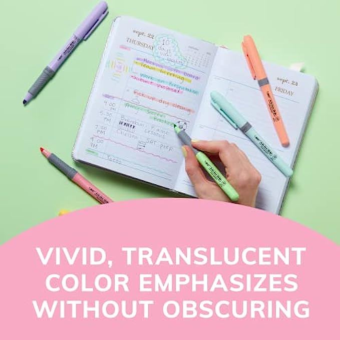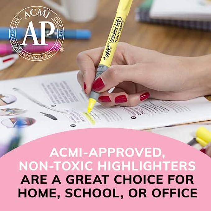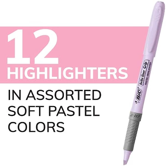 • One 12-count pack of BIC Brite Liner Grip Pastel Highlighters