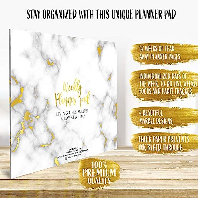 Beautiful Marble Weekly Planner Pad and Habit Tracker - Office Desk Supply to Do List for Women