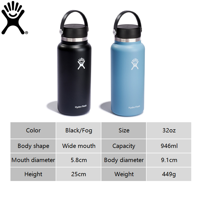 Hydroflask Hydro Water Bottle 32oz Large Capacity Stainless Steel Thermos Vacuum Bottle With Handle Lid Sports Portable