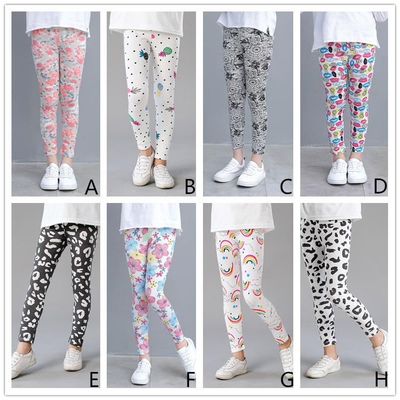 Kids Leggings For Girls Long Pants Flower Print Comfort Cotton Beauty Legging Girls Tights