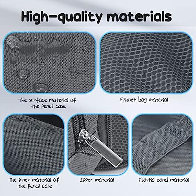 • 【Large-capacity storage space for neat storage】- The pencil bag is a 9*2.4*4.7 (inch) cuboid, which can accommodate 30-45 gel pens. The large-capacity area in the middle can accommodate large stationery such as calculators, and 2 layers of space can accommodate markers or other stationery. And the inner structure is designed with net pockets and sticky note bag, It can accommodate scissors, erasers, compasses, etc. The capacity of the pencil bag can fully meet the daily storage needs.