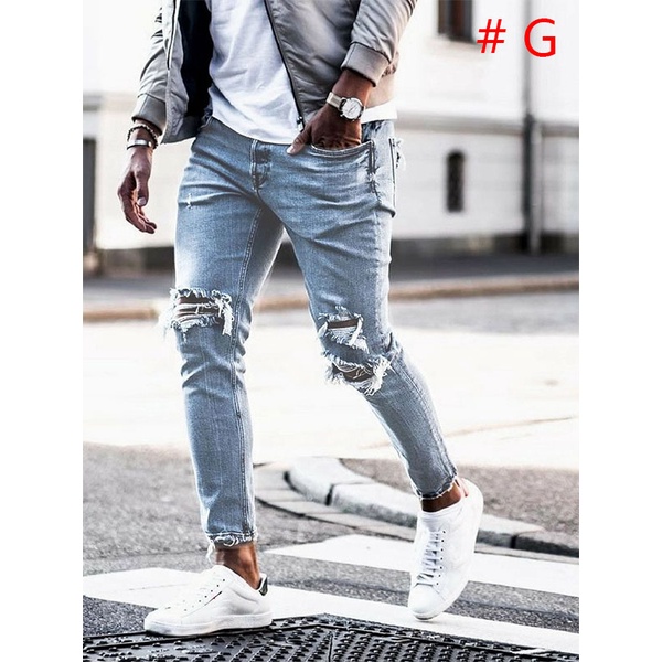 Men Jeans Skinny Jeans Stretch Pants Slim Fit Pants Ripped Jeans Long Pants Men Pants