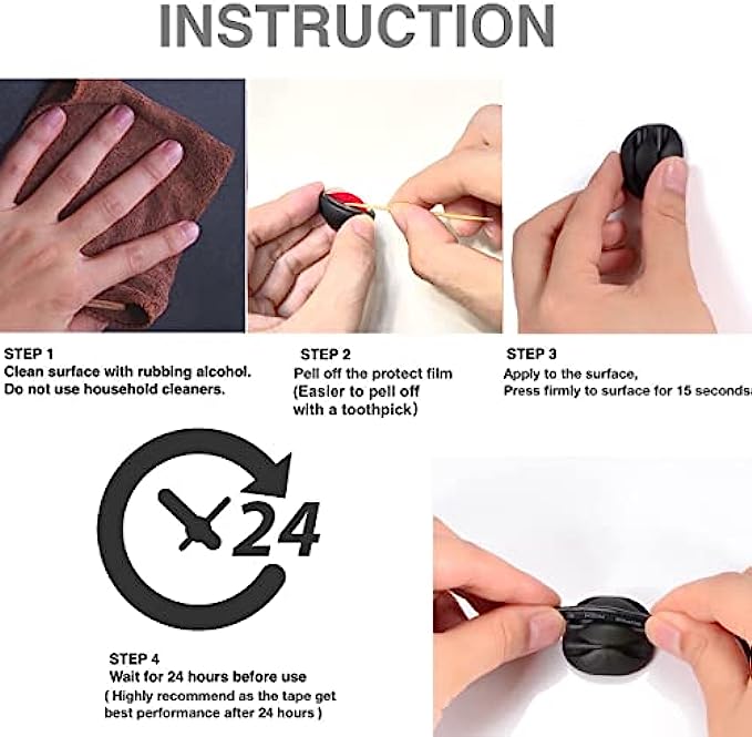 • Easy Use: Simply peel and stick your adhesive cable clip anywhere. Please kindly take a moment to the surface before sticking them which make them holding tight