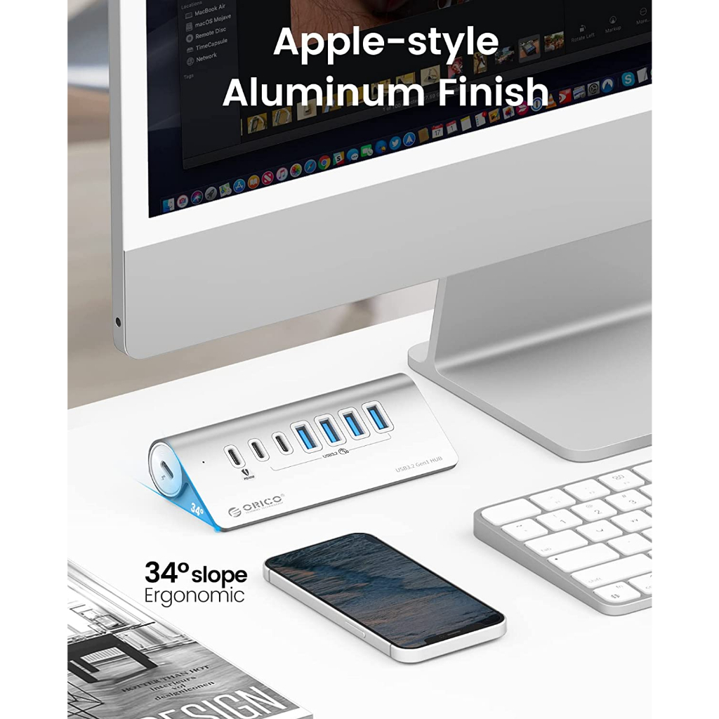 ORICO USB C Hub 10Gbps USB 3.2 Gen 2 Hub with 2 USB A Port 2 USB C Port Aliuminum USB Splitter with USB A Adapter Type C Power Supply Port for MacBook/ MacBook Pro