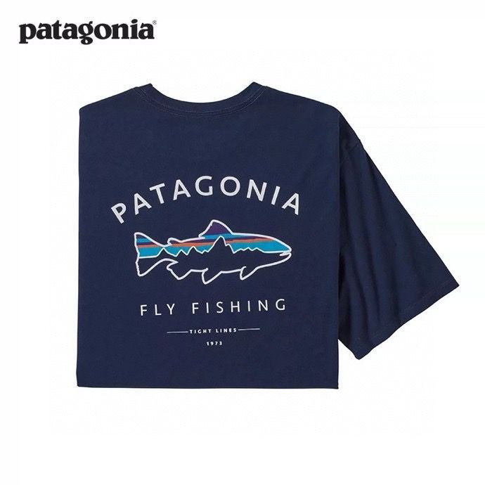 Pa back flying fish crewneck casual fashion print couple short sleeves