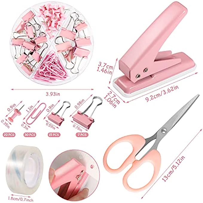 • 【Durable Material】The pink stapler and tape dispenser set are made of high-quality plastic material, which is durable and has strong stability, the hole punch and stapler are made of high-quality metal material, which is strong and unbreakable, and the binder and scissors are also easy to use