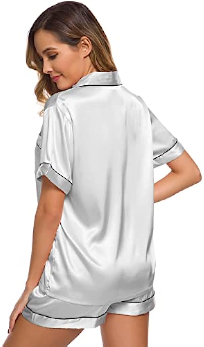 • Occasion:Women's Short Sleeve Silk Satin Pajamas Set, which is suitable for daily wearing and easy to match.Comfortable and suitable for lounging and sleeping,pajama party,girls day,bridal sleepwear,indoor, living room, bedroom, hotel, vocation, travel, and daily sleepwear.