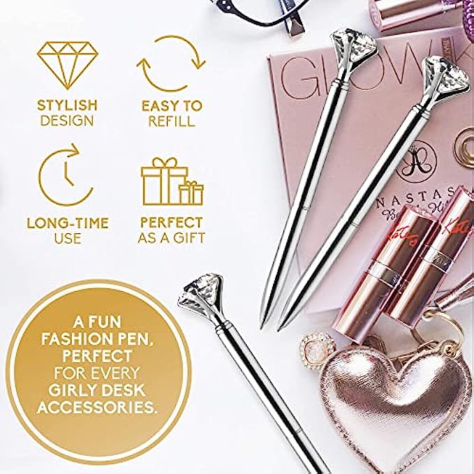 • ? SHARE your HAPPINESS! The bright, unique color of your new pens will bring you a lot of attention and compliments. Keep the 8 PCS metallic pens for yourself or make it a nice present to your teen girls, mom, women coworkers, girlfriend, wife, lady boss, female friends, bridesmaid, bride-to-be and other ladies. Strengthen the relationships with your loved ones, show your gratitude with unique and wonderful gifts. The shiny silver finish and the sparkling jewel will put a smile on their face!