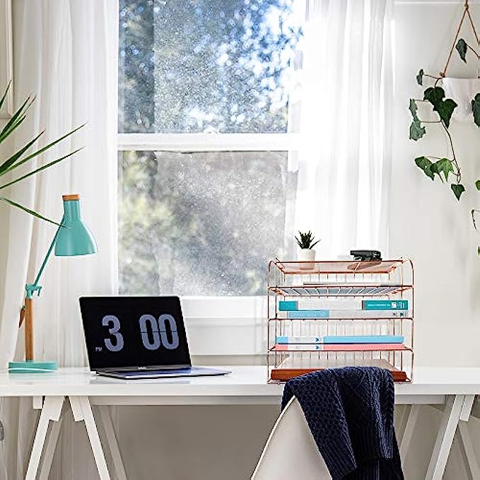 Spacrea Letter Tray, 4 Tier Rose Gold Desk Organizers and Accessories for Women, Stackable Paper Tray Organizer Desk File Organizer with 1 Upper Display Shelf (Rose Gold)