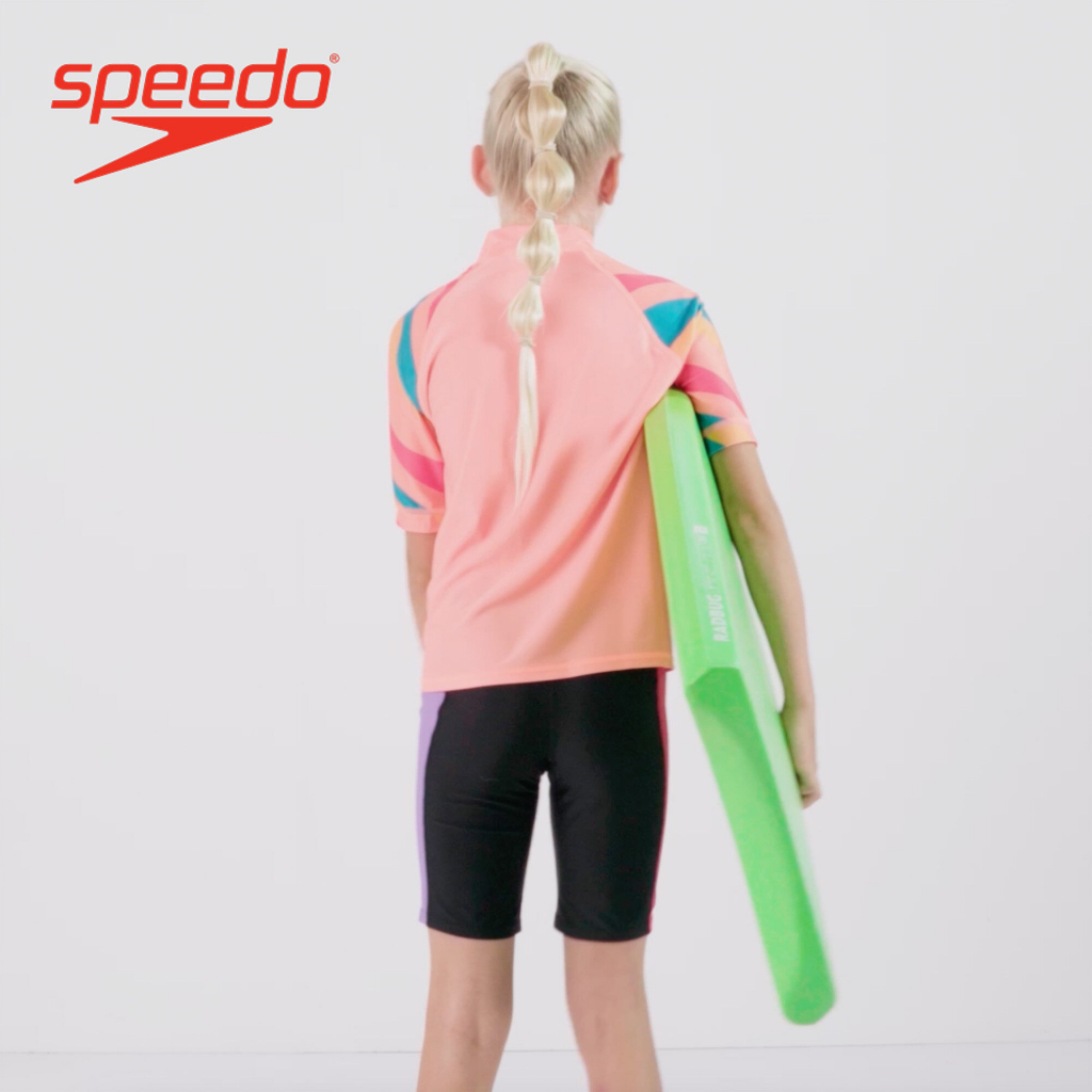 Speedo Kids Girl Swimwear - Printed Short Sleeve Sun Top - Peach - 8-1173114499