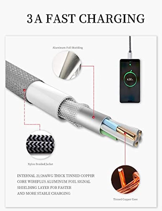 • 【3A Quick Charge&Sync】Transfer speed up to 480Mb/s, 3A Fast Charger,This power cord alone will not provide you with fast charging alone, you will need a power block rated for fast charging and a phone capable of the same.