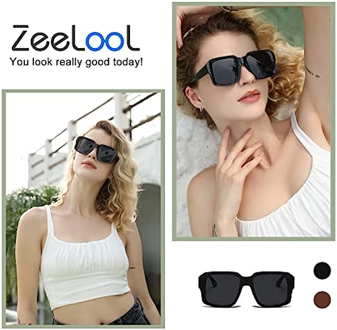 Zeelool Oversized Square Sunglasses for Women Men Simple Trendy Style Shades UV400 Protection Sun Glasses ZSP0028