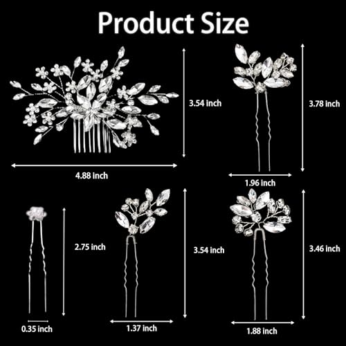 10 pcs Bride Hair Pins Rhinestone Bridal Hair Piece for Women Crystal Hair Accessories for Bride Bridesmaids Flower Girls(Silver)