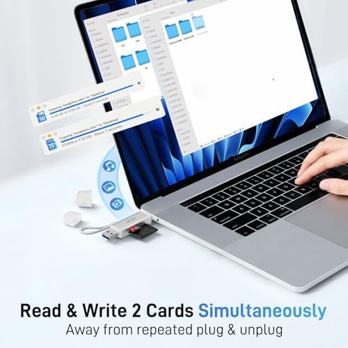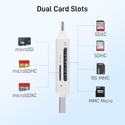 SD Card Reader USB C, Dual Slots USB 3.0 Type C to Micro SD Card Adapter, Memory Card Reader for MicroSD, SDHC, SDXC, Compatible with Laptop, PC, iPhone16/15, MacBook, iPad Pro, Android-Silver