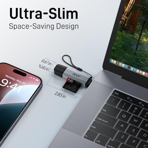 SD Card Reader USB C, Dual Slots USB 3.0 Type C to Micro SD Card Adapter, Memory Card Reader for MicroSD, SDHC, SDXC, Compatible with Laptop, PC, iPhone16/15, MacBook Pro/Air, iPad Pro, Android