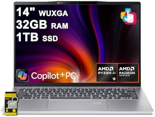 Sponsored Ad - Swift 14 AI Portable Laptop 14" WUXGA Matte Touchscreen AMD 10-core Ryzen AI 9 365 (Up to 50 NPU Tops - Up to 73 GPU Tops) 32GB RAM 1TB SSD for Creator Business Work Win11 ICP Hub/Copil