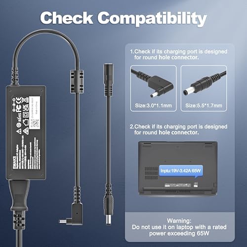 65W Laptop Charger for Acer Aspire 1 3 5 A515-44 A515-45 A515-46 A515-54 A515-54G A515-55 A515-56 A514-54;A315-24P A315-24PT A315-58 A315-59 A315-23 A314-23P 15 AG15-31P:A515-54G-54QQ A315-24P-R7VH