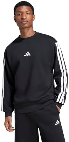 Men's Essentials 3-Stripes Fleece Sportswear Sweatshirt, Black/White, Medium