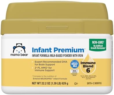 Amazon Brand - Mama Bear Infant Milk-Based Baby Formula Powder with Iron, 2'FL HMO, Omega-3 DHA and Choline, Brain, Growth, Immunity, Non-GMO, 1.39 pound (Pack of 1)