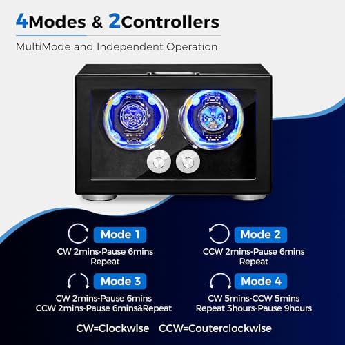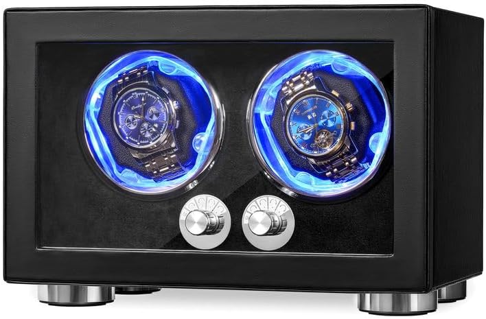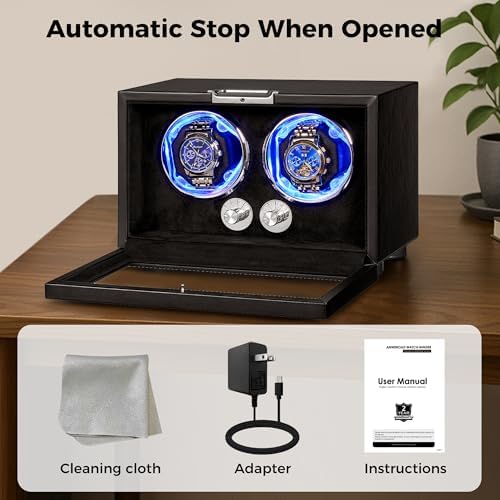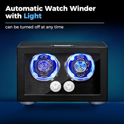 ANWBROAD Watch Winder for Automatic Watches, Double Watch Winder with LED and 4 Rotating Modes, Automatic Watch Winder Super Quiet Motor, Watch Winder Box with Adapter for Man UJWW004B