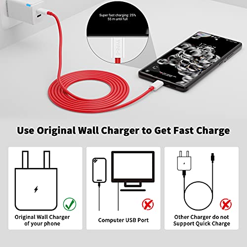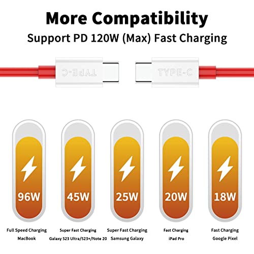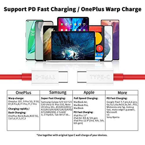 for SUPERVOOC USB-C to USB-C Cable for OnePlus 10T 6.6FT, 2-Pack Type C Warp Charge Dash Charger Cable 65W Super Fast PD Charging Cord for OnePlus 9 Pro 8T 8 Pro 7T iPad Pro MacBook Pro Air
