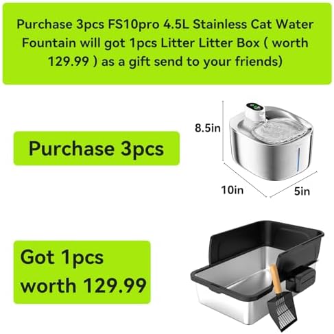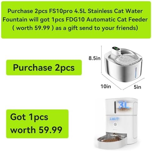 Sponsored Ad - Cat Water Fountain Stainless Steel,152oz/4L Wireless Pet Fountain Battery Operated,Quiet Filtered Pet Water Fountain,Automatic Water Bowl for Cats Dogs with Motion Sensor 5 Filters