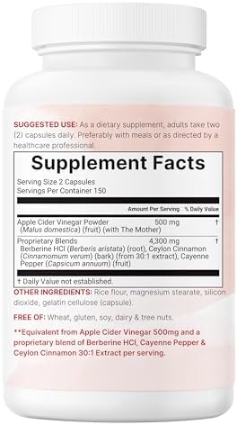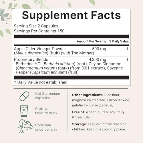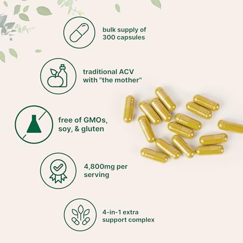 Apple Cider Vinegar with The Mother 4,800mg Per Serving, 300 Capsules | 4-in-1 ACV Complex | Ceylon Cinnamon, Cayenne Pepper, & Berberine | Immune, Digestion & Appetite Support | Non-GMO, Gluten Free