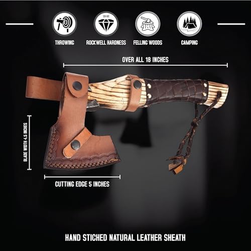 Viking Axe Ashwood Handle Handmade Carbon Steel Blade, Outdoor Camping Hunting, Norse Hatchets Axes, with Leather Wrapped Handle & Leather Sheath Wood Splitting Axes