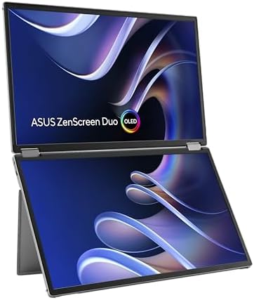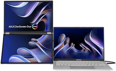 ZenScreen Duo OLED 360° Foldable Portable Monitor (MQ149CD) - Dual 14-inch, 16:10, 1920x1200, DisplayHDR400 True Black, 100% DCI-P3, Delta<2, Dual USB-C, Mini-HDMI, Kickstand, 3 yr Warranty