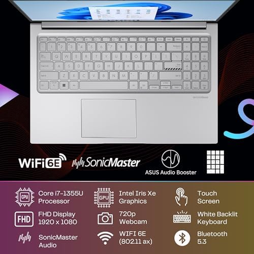 Sponsored Ad - Vivobook 15 Business Laptop, 15.6" FHD Touchscreen Display, Intel 10-Core i7-1355U(5GHz), Backlit Keyboard, Wi-Fi 6E, SonicMaster, Numeric Keypad, Silver, Windows 11 Home(16GB RAM | 2TB