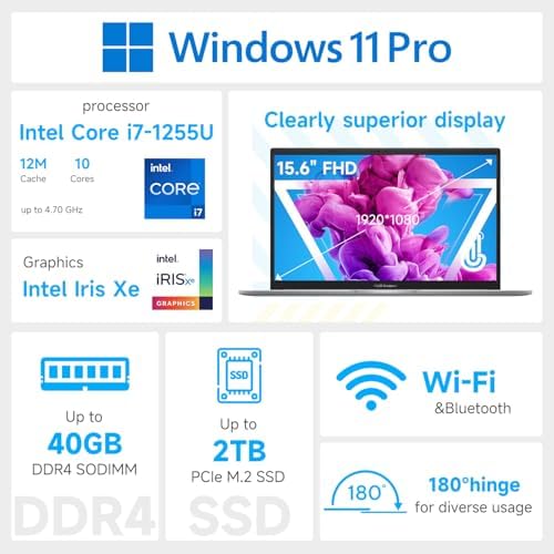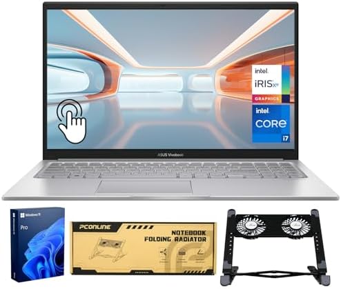 Vivobook 15.6" Business Laptop, FHD Touchscreen, Intel 10-Core i7, 24GB RAM, 1TB SSD, Backlit KB, HDMI, Win11Pro, Bundle with PCO Notebook Folding Radiator, Laptop Cooler