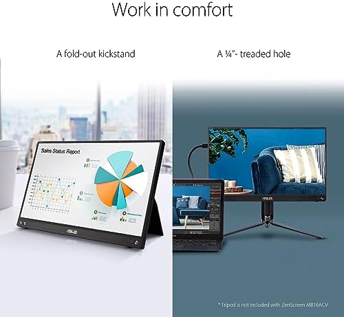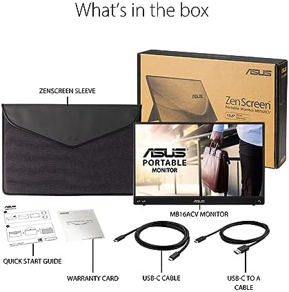ZenScreen 15.6” 1080P Portable Monitor (MB16ACV) - Full HD, IPS, Eye Care, Flicker Free, Blue Light Filter, Kickstand, USB-C Power Delivery, for Laptop, PC, Phone, Console