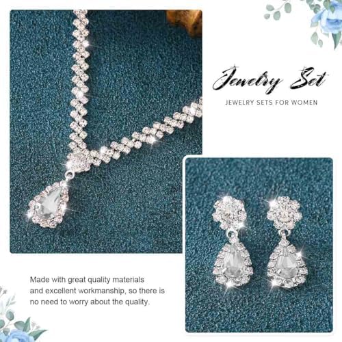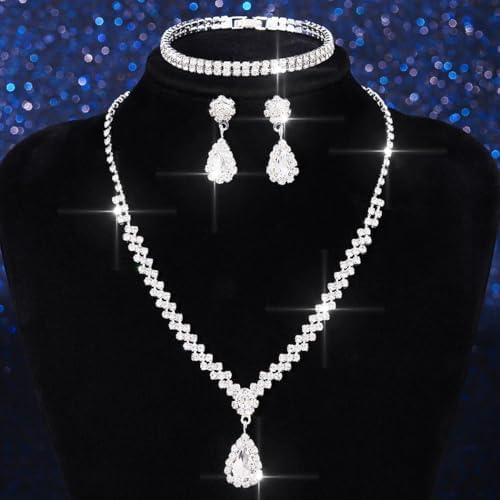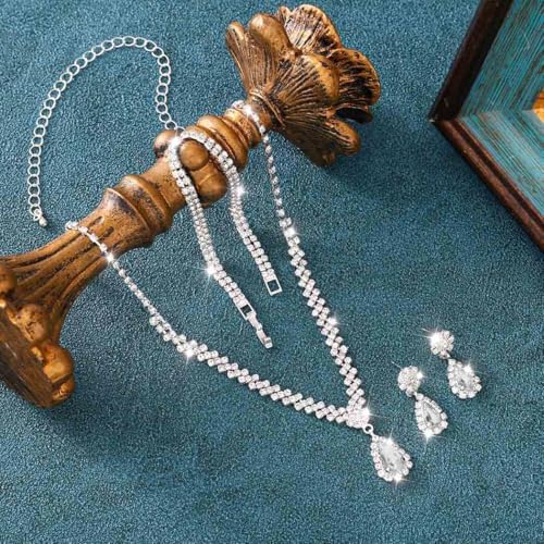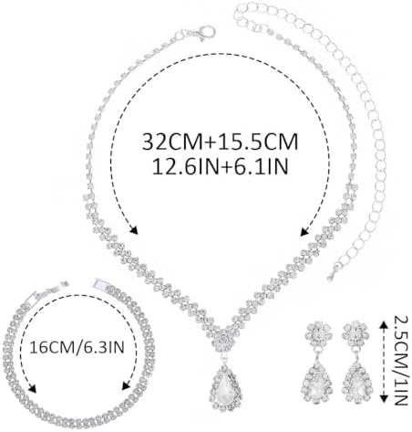 Aukmla Crystal Bride Wedding Jewelry Set Silver Rhinestones Bridal Necklaces Earrings Bracelet Sets Prom Jewelry for Women and Brides