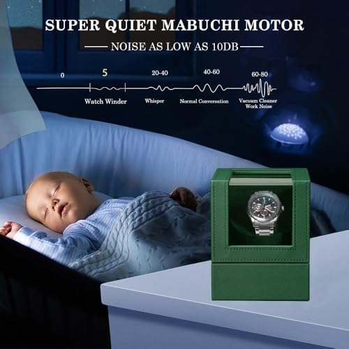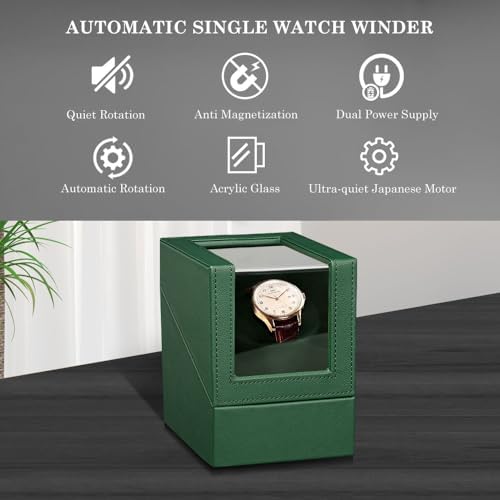 Automatic Watch Winder,Single Watch Winder for Women's and Men's Watches,Watch Shaker with Japanese Quiet Motor,Battery Powered or AC Adapter
