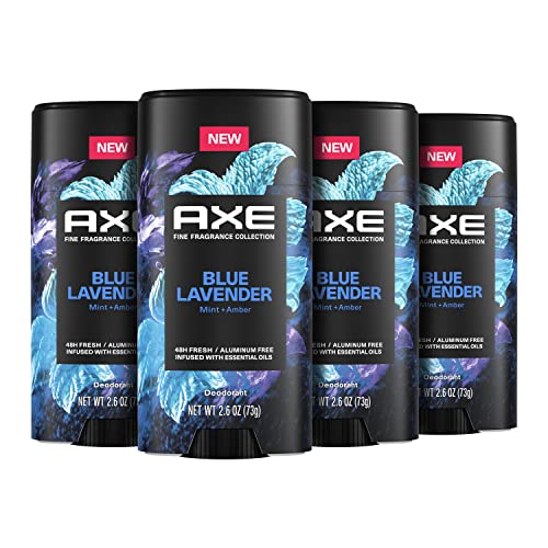 AXE Fine Fragrance Collection Deodorant Stick Blue Lavender 4 count With 48H Freshness and Odor Protection Deo Stick Infused with Lavender, Mint, and Amber Essential Oils 2.6 oz