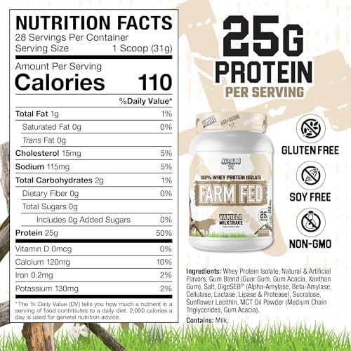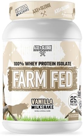Axe & Sledge Farm Fed 100% Whey Protein Isolate | 25g Protein | Low Carb, Low Sugar, Gluten Free | Protein Powder for Men and Women | Keto | Made in The USA | 28 Servings, Vanilla Milkshake