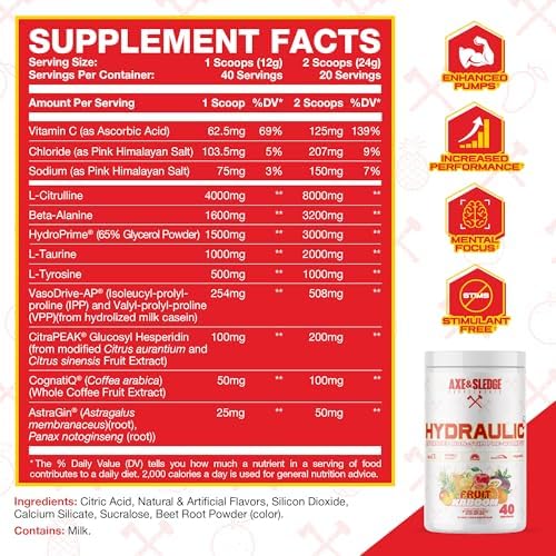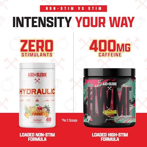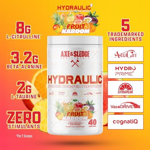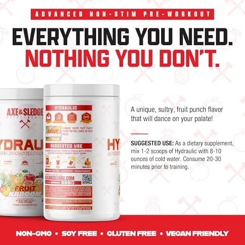 Axe & Sledge Hydraulic Stim-Free Pre-Workout Powder for Men & Women | Performance, Stamina, Focus, Pumps | L-Citrulline, Beta Alanine, Creatine, Caffeine-Free, Fruit Kaboom