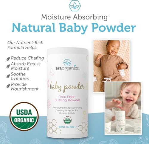 Sponsored Ad - Era Organics Talc-Free Organic Baby Powder - USDA Organic Dusting Powder with Arrowroot, Calendula and Cornstarch for Newborns, Babies or Toddlers - Soothing, Fragrance Free, Made in US